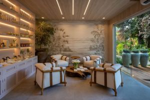 Próximo ao chafariz fica a Casa dos Aromas, uma perfumaria no estilo tradicional, assinada pelo arquiteto Rafael Mirza. O ambiente oferece produtos da Mels Brushes, como difusores, sachês perfumados, sabonete líquido, água para tecidos, sabonetes em barra, essências, espumas e sais de banho.