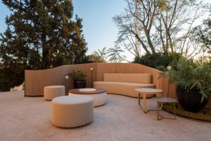 Em São Paulo, os paisagistas Catê Poli e João Jadão criaram a Praça Paulista Augusta. Nela, os visitantes da mostra puderam descansar e contemplar o percurso. O mobiliário convida ao relaxamento e as plantas escolhidas (Guaimbê, costela de adão, ciclanto) se adaptam ao indoor. O revestimento Minimalismo Bruto resgatou a aparência do concreto de maneira imponente com formas geométricas puras.