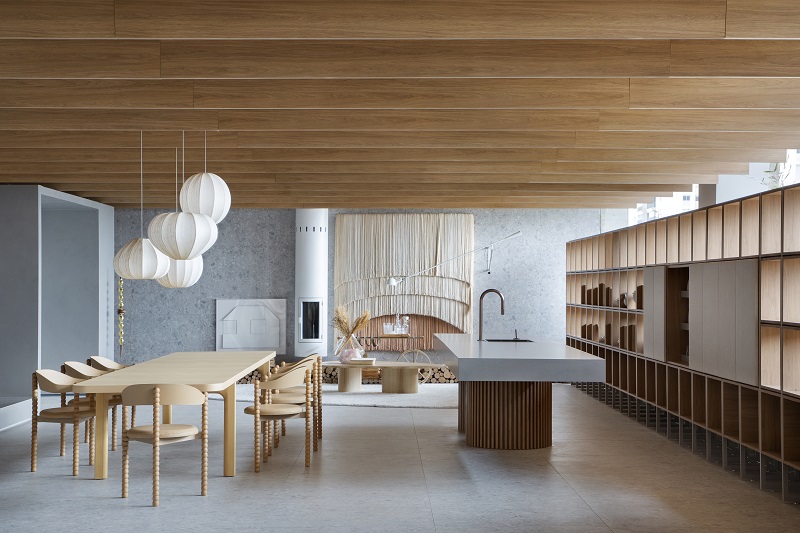 Uma cozinha abriga afeto. Essa é a ideia do projeto, que resgata memórias, cheiros, conversas, risadas e família. Os objetos fazem referência a importância de preservar memórias afetivas, o que é demonstrado no mobiliário, eletrodomésticos, revestimentos do piso e outros.