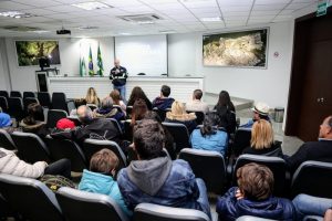 O Porto de Paranaguá retomou a recepção de grupo para palestra e visitação ao cais nos finais de semana. Os alunos do Colégio Estadual Júlio Mesquita, de Curitiba, foram os primeiros a participar das atividades neste sábado (6).