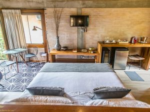 Como a proposta do Vila Serra da Luz é preservar o ambiente ao redor não teria sentido uma infinidade de acomodações. Por isso, apenas cinco amplos e confortáveis bangalôs se espalham pela mata. Porém, a proximidade com a natureza não é o único elemento que os une. Apaixonada por sabores e aromas, Marta Sarraf adotou ingredientes e fragrâncias como conceito de cada uma das hospedagens. Na véspera, cada hóspede escolhe seus itens favoritos e desperta pela manhã com uma cesta de piquenique customizada no café da manhã. Todas as habitações são decoradas com móveis Saccaro e Breton nas varandas, camas king size com enxoval Trussardi, TV 32” com SKY, caixas de som, cortina blackout, frigobar, adega climatizada, amenities Natura, chuveiro com aquecimento a gás, secador de cabelo. Elaborados pela arquiteta Carolina Perrenoud, a ideia é que cada bangalô seja um universo por si só, envolto por uma atmosfera de introspecção e contemplação.