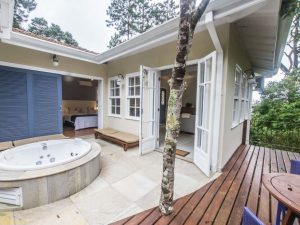 A Pousada Vila Serra da Luz também oferece acesso a um spa com águas termais, além de cinco cachoeiras e uma reserva natural privada, perfeita para passeios e caminhadas.