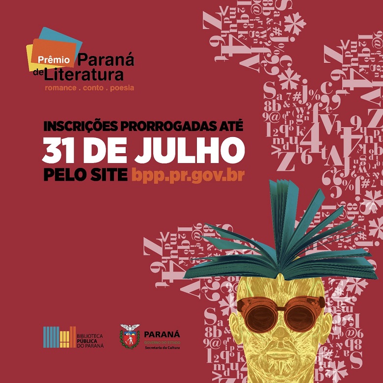 A Biblioteca Pública do Paraná prorrogou as inscrições para o Prêmio Paraná de Literatura 2018, que seleciona livros inéditos nas categorias Romance, Contos e Poesia. Autores de todo o país podem inscrever seus trabalhos, gratuitamente, até o dia 31 de julho, por meio do formulário disponibilizado em nosso site (clique). O vencedor de cada categoria recebe R$ 30 mil e tem sua obra publicada pelo selo Biblioteca Paraná, com tiragem de mil exemplares. Os premiados também recebem 100 cópias de seus livros e podem, mais tarde, reeditar os trabalhos por outras editoras.