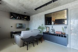 Projeto Nina Abadjieff. A compra da TV deve se basear na medida do espaço disponível da sala. Sendo assim, não adianta adquirir uma grande TV se ambiente não comporta.