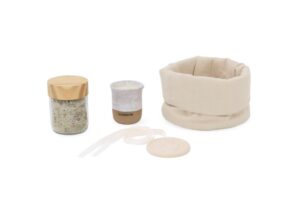 Sais de Banho Artefacto – (energizante) com ervas, flores naturais e com óleo essencial de Lavanda + tampa de madeira clara + infusor saquinho algodão