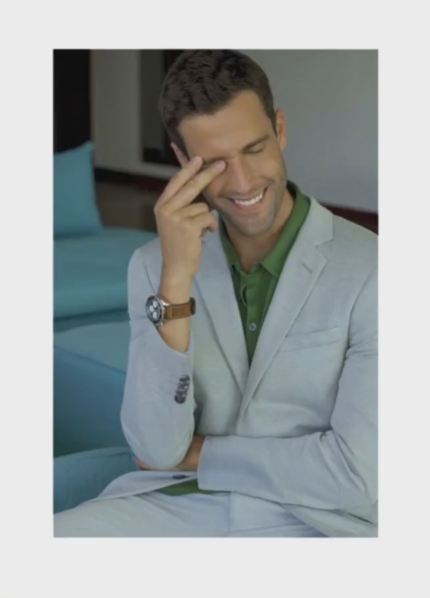 Duas grandes personalidades brasileiras estampam essa ação: o apresentador e jornalista Pedro Andrade e o atleta Igor Amorelli. Graças ao stretch das peças essa representação do homem em movimento une a alfaiataria ao esporte para uma combinação de força e elegância.