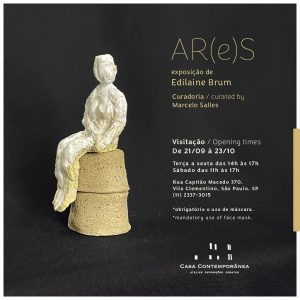 A artista visual Edilaine Brum apresenta sua primeira individual em São Paulo intitulada “AR(e)S”, a partir de 21 de setembro de 2021, na Casa Contemporânea, na Vila Mariana, em São Paulo. Com curadoria de Marcelo Salles, que a acompanha desde 2015, a artista, de Limeira, interior paulista, apresenta 30 obras recentes, entre esculturas, assemblages e desenhos. A mostra fica em cartaz até 23 de outubro de 2021.