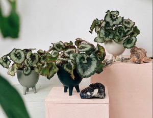 Begônia Caracol: diferencial é a espiral em formato Fibonacci da folha. Planta delicada, exige boa iluminação indireta e não tolera umidade baixa ou altas temperaturas. Vendidas em vaso formato pote grandes. Se bem cuidadas as suas folhas podem atingir mais de um palmo de diâmetro. Peperomia Raindrop: Muitas vezes é confundida com a Pilea, porque ambas têm um corpo compridinho e folhas em “formato de panqueca”. Essa variedade, a Raindrop, é originária da floresta amazônica, enquanto a Pilea é uma planta asiática. A diferença está na haste da planta: a Raindrop tem a haste verde e mais vigorosas, suas folhas são maiores e possuem um biquinho, dando-lhes o formato de gota de chuva invertido.