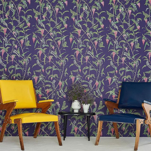 Para complementar a decoração de um espaço que já está montado, os papéis de parede são ótimas alternativas. A sócia-proprietária da Cosy Home, Nitsa Vianna, indica duas opções, uma da Wallcovering (R$ 945 o rolo) que traz mais destaque aos tons roxos, e um da Branco., criado à mão pelos artistas da marca europeia Snijder&Co (R$ 580 o rolo).