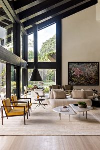 Essa residência pertencente a uma familia com um filho. Foi um projeto de reforma desafiador pois o projeto dos anos 80 tinha uma linguagem de chalé mas esta linguagem estava muito desatualizada. Inúmeros detalhes oitavados e ambientes com quinas, espaços escuros, onde a iluminação natural não chegava. O proprietário havia gostado do estilo chalé, com o living com pe direito alto. Então este foi o nosso ponto de partida.