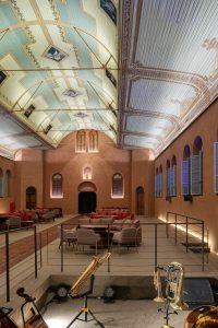 O auditório do Colégio Arnaldo, inaugurado em 1912, é o espaço que recebe o projeto assinado pelo arquiteto Gustavo Penna e por sua irmã, a designer de interiores e colecionadora Sandra Penna, durante a mostra Modernos Eternos 2021. O lugar escolhido já apresenta em sua história um clima fora do tempo e do lugar comum, misturando características que trafegam entre o solene e o cênico, revelando uma arquitetura eclética marcada pelos detalhes.