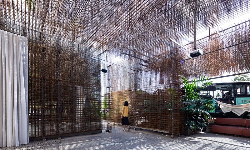 E para figurar entre os 12 projetos selecionados ao prêmio, a cena, apresentada durante maior mostra de arquitetura, design de interiores e paisagismo do estado no ano passado, trouxe como conceito ser um pavilhão efêmero, pensado mais como sistema e menos como objeto, definido a partir de um módulo de paredes em telas soldadas de vergalhão, que considera sua desmontagem e remontagem em outros contextos. A ideia deu certo, pois, ao final da CASACOR 2018, a cena foi remontada em uma das sedes da ArcelorMital e transformado em Espaço de Descompressão.