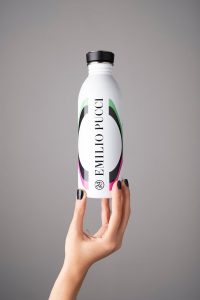 A primeira, lançada em 1965, é uma interpretação abstrata da ilha de Vivara, no golfo de Nápoles, cujas ondas agora decoram a garrafinha da Pucci. O segundo modelo, Torre, traz um desenho gráfico, geométrico, inspirado num trabalho do artista plástico Melvin Ramos, chamado “Pucci Pants”, de 1966.Investindo em questões ligadas à preservação da natureza e sustentabilidade, a Emilio Pucci lança uma garrafa ecológica em parceria com a marca italiana de design 24Bottles. O acessório feito em um aço inoxidável superleve está disponível em duas versões diferentes, com as estampas Vivara e Torre, ambas emprestadas do acervo dos anos 1960.
