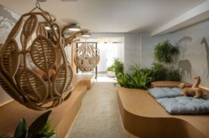 Em espaços infantis, é preciso estar atento às possíveis interferências do solo, campos eletromagnéticos próximos e priorizar materiais naturais e atóxicos | Projeto Meneghisso & Pasquotto Arquitetura | Foto: JP Image