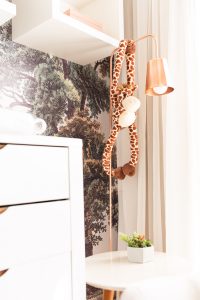 No apartamento, localizado no bairro Batel, a família escolheu o tema Safari para decorar o quarto de 9,5m². Coube a arquiteta Larissa Lóh explorar ao máximo o espaço com o melhor aproveitamento possível para receber a Duda.