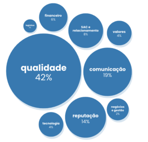 O estudo identificou nove pilares principais que sustentam ou corroem a confiança nas marcas. Entre eles, os mais relevantes são qualidade (42%), comunicação (19%) e reputação (14%). A entrega prática do produto, a autenticidade dos porta-vozes e o histórico da marca são elementos decisivos para a formação da opinião pública.