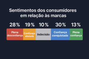 Ao mapear a jornada emocional do consumidor, a Orbit dividiu os perfis em cinco estágios: 28% estão em plena desconfiança (boicotam e denunciam); 19% tiveram a confiança abalada por experiências negativas; 10% permanecem indecisos; 30% têm confiança conquistada após boas experiências; e 13% expressam plena confiança, atuando como promotores das marcas nas redes.