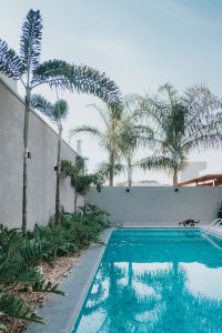 6 – Outra tendência muito pedida atualmente é a construção de “prainhas” nas piscinas. Além dela, outra opção muito pedida são as piscinas naturais, que lembram a estética de mar ou lagos cristalinas.