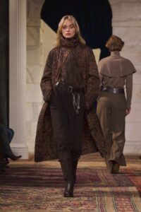 A paixão pela aventura define a mulher Ralph Lauren para o outono 2026. Uma modernista com um aceno à história, ela exige um chic pragmático com uma carga emocional. Suas roupas precisam funcionar, mas também encantar.