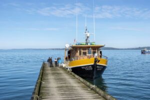 Situado em uma colina com vistas panorâmicas da baía de Pullao e das paisagens verdejantes da Ilha de Chiloé, o Refugia Chiloé oferece uma experiência que combina conforto, design contemporâneo e respeito pela natureza. Há 24 quartos revestidos em madeira, spa privativo e uma embarcação própria, a Williche, para explorar as águas tranquilas da região.