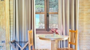 A organização dos espaços também foi pensada para qualificar a estadia e favorecer o funcionamento da pousada. As suítes priorizam privacidade e aconchego, enquanto as áreas de convivência convidam ao descanso e à contemplação da paisagem, ampliando a experiência de quem se hospeda.
