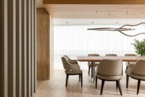 Uma tela em branco. Foi assim que a arquiteta Bruna Souza deu início ao projeto de um apartamento de 380m2, com vista para um dos principais parques de Curitiba. A planta original do apartamento antigo, ganhou um makeover que teve como inspiração as grandes paixões de um casal, que decidiu trocar uma ampla residência de 1000m², na qual viveram por 15 anos, pelo apartamento, que será o último refúgio deles. A mudança para um espaço menor não significou abrir mão do conforto e da qualidade de vida, mas sim uma readequação inteligente que transformou o novo lar em um espaço autêntico e funcional.