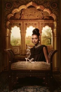 Entre os destaques da apresentação estão o modelo Jahanara, uma homenagem à cultura e ao artesanato indiano, com a sandália Jahanara Chandelier em versões slingback scarpin. Bordados com delicadeza, as peças captam o brilho dourado do entardecer e o esplendor dos palácios reais da Índia.