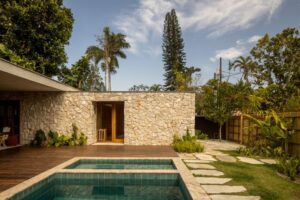 Projeto assinado pelo escritório Pitta Arquitetura valoriza a integração com a paisagem tropical e soluções construtivas sustentáveis em uma casa de 250m²