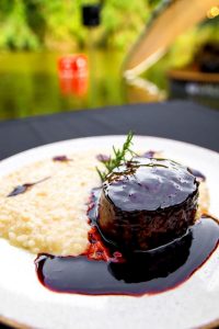 Os pratos criados pelo time de chefs do restaurante são inspirados na culinária contemporânea europeia com uma nova roupagem mais brasileira, como o queridinho Medalhão de Mignon ao Molho Marchand du Vin, que leva vinho tinto seco e creme de leite, deixando-o cremoso e saboroso, acompanhado de risoto de parmesão. E a Saltimbocca, um preparo de peito de frango com presunto Parma e risoto de beterraba.