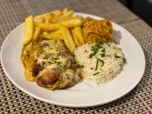 Nos pratos executivos, fãs da comida com “gostinho de casa” pode escolher pedidas como o Bife a cavalo, que traz um corte bovino acebolado e vem com arroz, feijão, farofa e salada (R$ 23), ou o Frango à parmegiana, com arroz, batata frita, spaghetti ao sugo e salada (R$ 21).
