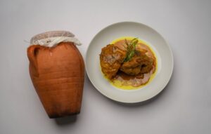 Entre o clássico e o contemporâneo, o chef, em virtude de um percurso único e por sua ampla e premiada experiência, propõe uma gastronomia marroquina reimaginada. Assim, pratos tradicionais são reinterpretados com ingredientes ousados e inéditos, como a famosa pastilla de lagosta com espinafre. Saladas aromáticas, cuscuz com carne e verduras, tagines e a típica tanjia de Marrakech destacam-se no menu. Sobre a tanjia, antes de ser um prato é um pote de barro utilizado para cozinhar, de forma lenta entre brasas de carvão, legumes e carne de vitela envolvidos por especiarias selecionadas, como cominho e açafrão.