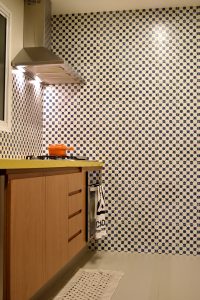 Em ambientes muito frequentados como a cozinha e o banheiro, a atenção deve ser redobrada. Os revestimentos estampados, seja cerâmica ou ladrilho, podem ser aplicados com parcimônia para não cansar. Atrás da mesa de jantar, no backsplash da cozinha, na varanda e parede do box são algumas das possibilidades. Balanceando os elementos, esses locais ficarão agradáveis e convidativos.