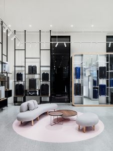 Com impressionantes 290 m², a flagship ocupa uma posição de destaque ao longo da ampla avenida comercial de Cheongdam-dong. Uma enorme fachada fica posicionada em frente à paisagem urbana e é decorada com painéis que lembram o design icônico da RIMOWA. Linhas limpas, displays metálicos e luminárias elegantes são marcas registradas do espaço, que se mesclam para criar uma atmosfera composta, permitindo refletir sobre o passado e o presente das coleções da RIMOWA. A loja também possui um Centro de Atendimento ao Cliente, onde os clientes podem agendar serviços e fazer consultas.