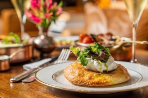 O brunch foi idealizado pelo chef Felipe Rodrigues, que dividiu o cardápio em quatro etapas. Para começar, uma mesa de queijos brasileiros, charcuterie artesanal, pães de fermentação natural, compotas caseiras e frutas da estação, da qual os clientes podem se servir à vontade. De entradas frias, a sequência é de salmão gravlax com beterraba e molho Gribiche, à base de ovos e mostarda; burrata com pesto de pistache, folhas orgânicas e focaccia; crudo de carne com iogurte de ervas, hommus e crudités; e ovos beneditinos.