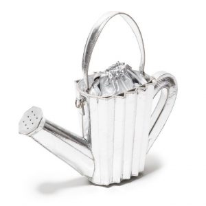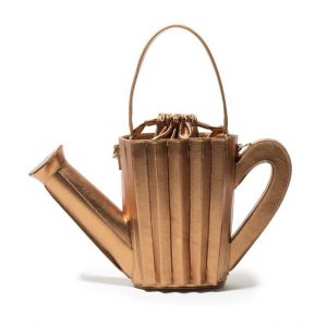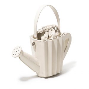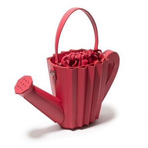 Carinhosamente apelidada de “regador da Doroty”, a bolsa ‘Regador’ está presente nos tamanhos grande e médio (mini), e conta com uma alça crossbody na mesma tonalidade da bolsa. O modelo remete ao objeto clássico da jardinagem, mas traduzido de forma onírica em cores metálicas como cobre e prata; vivas como vermelho, amarelo e azul marinho; e neutras como o verde pastel, cinza e off white.