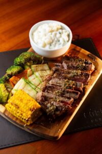 Uma das opções de prato principal do Córdoba Parrilla, casa estreante no festival: Bife de Chorizo fatiado, legumes na brasa e maionese da Dona Maria. R. Francisco Negrão, 276 – loja 3 – Água Verde. (41) 99962-9604. @cordoba_parrilla.