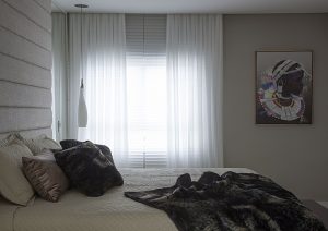 Neste dormitório, a luminária fica próxima da cama do casal, mas não precisa ser acionada durante o dia por conta da iluminação natural oriunda da janela |Foto: Luis Gomes