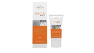 Ensolei Multi é um protetor solar com FPS60 e efetiva ação antissinais. A fórmula exclusiva proporciona uma alta proteção UVA/UVB, e proteção contra a radiação infravermelha, que pode causar danos profundos. A dupla reparação do DNA auxilia na renovação celular, combatendo os sinais visíveis do envelhecimento da pele. O produto possui efetiva ação antioxidante e antipoluição, protegendo a pele dos danos oxidativos e dos agentes externos prejudiciais. Tudo isso com toque seco e efeito mate, proporcionando controle da oleosidade. Preço sugerido: R$ 89,99 (50ml)