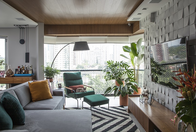 Para manter o ambiente agradável e arejado, espécies de plantas bem selecionadas se configuram como parte da decoração, além de conceder o entusiasmo e o frescor da convivência com o natural. “Vasos com flores também são super bem-vindos”, detalha Erika.