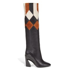 Já Christian Louboutin, maison francesa do famoso solado vermelho e preferida de muitas celebridades, traz detalhes lúdicos e inesperados – como a bota com salto geométrico em um jogo de ilusão de ótica – e sandálias que lembram trapézios.