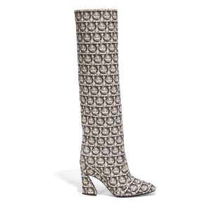 Uma das principais casas de moda italiana, a Salvatore Ferragamo explorou linhas não convencionais na construção dos saltos de seus calçados. Sejam botas na icônica estampa Gancini, sandálias bicolores, bem como outros modelos onde o salto é o ponto de destaque, como a coleção intitulada de Refacted Heels – que além de refletir a luz à sua volta, tem construção em um incrível 3D piramidal.