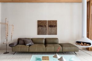 Ainda em São Paulo, a Salva também ressaltou a versatilidade dos acabamentos das suas coleções. No projeto Casa Arrumada, da arquiteta Bárbara Dundes, estava o sofá Agreste, um dos best-sellers da Salva, que é inspirado na área que fica entre a Zona da Mata e o Sertão brasileiro, ganhou duas cores no seu acabamento. Nos braços, a arquiteta aplicou o revestimento no tom Efetti Gris e no encosto, a cor Garbo Silvestre. Atualmente, a Salva conta com mais de 50 opções de revestimentos em couro com uma ampla variação de cores, texturas e resistência (baixo, médio ou alto tráfego), o que permitem a customização de qualquer peça do seu portfólio.