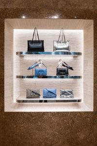 O conceito do design da nova loja do shopping JK Iguatemi baseia-se em curvas retilíneas, com esquema de cores e texturas harmoniosas que vão desde nogueira, veludo e toda uma gama de tonalidades que evocam a sensação calorosa do verão na Toscana. Materiais luxuosos decoram e envolvem a loja – como mármores travertino, etrusco e rosa – trazendo uma variedade de pedras nobres com veios naturais. O mobiliário e a iluminação foram concebidos pela equipe de design sediada na Itália, em colaboração com profissionais locais. A boutique reforça e ilustra as intenções da Ferragamo no Brasil: a necessidade de expandir os valores da marca e a beleza do design italiano – não apenas na moda e no vestuário, mas também na atmosfera e no lifestyle. A Salvatore Ferragamo JK Iguatemi é um espaço curvilíneo, sofisticado, com materiais de alta qualidade, representando o que há de melhor na Maison italiana.