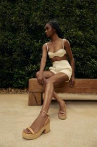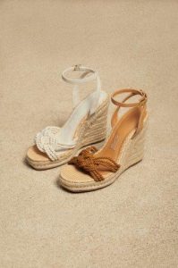 O mule e a flat com cabedal em macramê trazem o toque artesanal com uma abordagem ainda mais sofisticada e despontam como peças-desejo. Integrando o mood, alguns modelos recebem o acabamento da folha de madeira para revestir saltos de diferentes designs e alturas, como a protagonista da edição, a sandália de salto cilíndrico e cabedal tramado. O mix up de texturas naturais também surge na sandália meia pata e no mule, que ainda ganham charme extra com o detalhamento do nó no cabedal. Para aderir de vez ao clima fresh da estação, a palmilha de palha arremata itens-chave, como a thong lace up e a flat de cabedal tramado.