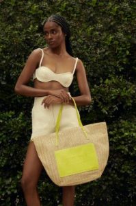 Para as bolsas, o lançamento apresenta a tote bag com shape estruturado em palha, que conta com o detalhamento trendy do logo Santa Lolla bordado em alto relevo, e a maxi bag, hit do momento, trabalhada em palha e couro, perfeita para levar nas férias de verão.