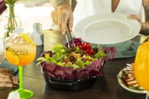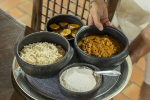 “Sou curitibana e tenho uma história com Morretes, que tem uma gastronomia muito forte. O barreado, por exemplo, é um prato tradicional dessa região. O convite para criar esse cardápio veio com o desejo de resgatar a cultura local e, ao mesmo tempo, trabalhar a sustentabilidade de forma prática”, conta a chef Letícia Krause. “A origem da sustentabilidade está no nosso consumo e na gestão dos produtos. Estamos priorizando ingredientes da época e da região, como pepino, palmito, pinhão, banana e maracujá. Tudo que a floresta nos oferece nesse momento”, complementa.
