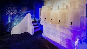 São fornecidos aos visitantes luvas e casacos adequados, onde podem tirar fotos em um trono de gelo, com bonecos de gelos e deslizar em um escorregador congelante, além de degustar as doses de bebidas quentes, como: