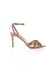 O brilho da sandália e seus detalhes em cristais brilhantes transmitem perfeitamente o glamour da label italiana.