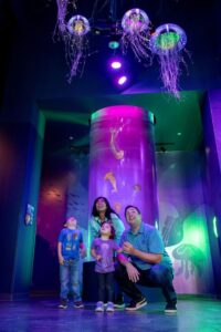 - Realm of Jellies – A Story of Water and Light: Entre no encantador Realm of Jellies, onde a água e a luz revelam a delicada beleza das águas-vivas. Habitats interativos permitem que os visitantes se aproximem para observar águas-vivas de cabeça para baixo e até tocar em uma cascata em formato de globo repleta de medusas-da-lua. Descubra o ciclo de vida e a anatomia das águas-vivas e dê uma espiada nos bastidores do processo de propagação.