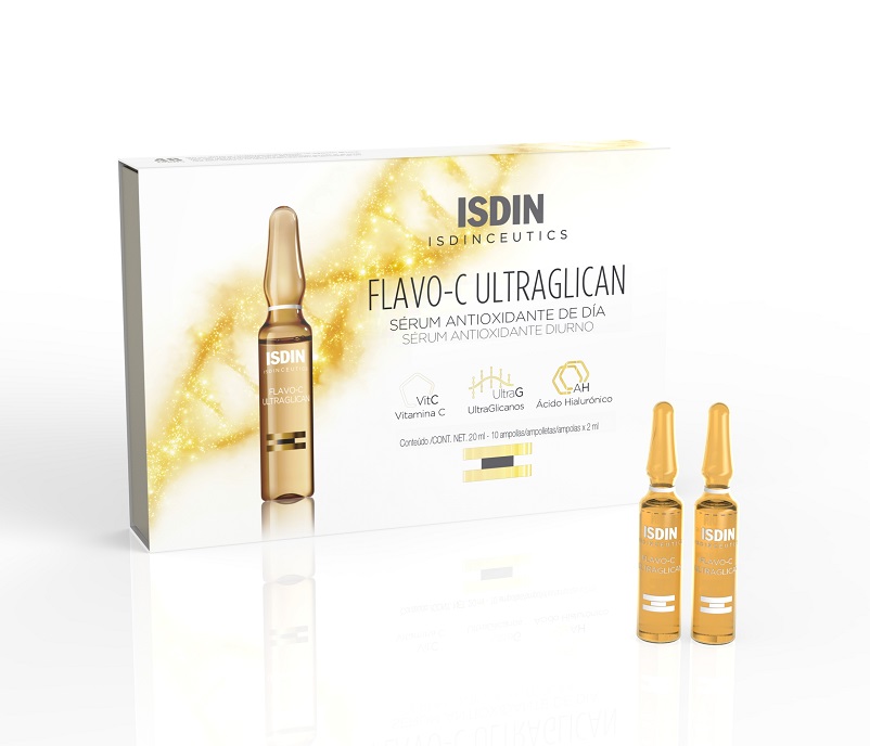 A marca espanhola ISDIN, referência mundial em dermocosméticos, lançou no mercado brasileiro o Flavo-C Ultraglican com Vitamina C, Ultraglicanos e Ácido Hialurônico, que juntos formam um verdadeiro escudo contra o envelhecimento da pele. O Flavo-C Ultraglican é um produto completo, pois os Ultraglicanos mantém a hidratação e reforçam as estruturas de sustentação da pele, enquanto a Vitamina C luta contra o stress oxidativo e devolve luminosidade à pele. Além do ácido hialurônico que rejuvenesce a pele graças à capacidade de captação e retenção de água.